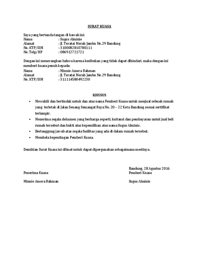 Surat ini pada umumnya ada beberapa . Contoh surat kuasa pengambilan sertifikat tanah; Contoh surat perjanjian jual beli mobil bekas yang resmi dapat di download secara gratis untuk memudahkan transaksi anda agar tidak terjadi . Yang pembaruan registrasi (balik nama) kepada kantor samsat terkait belum dilakukan oleh pembeli hingga tanggal surat pernyataan ini dibuat. Contoh surat kuasa jual beli tanah;
